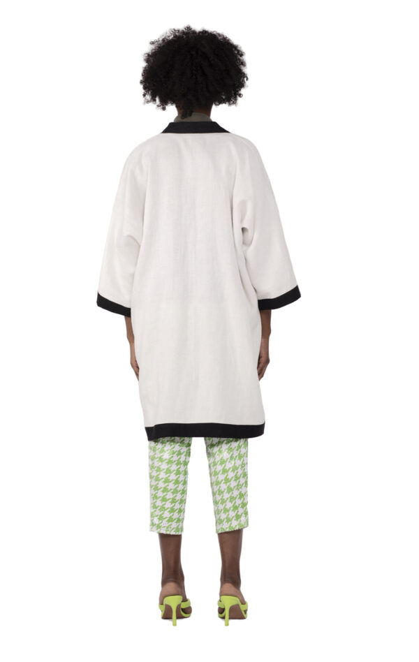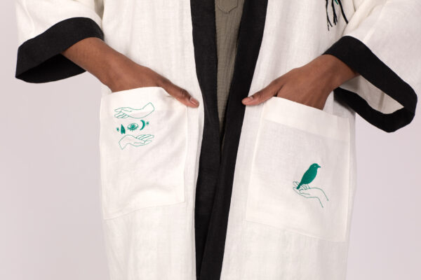 Linen is the perfect summer fabric, since it’s light and breathable .This embroidered linen kimono can be layered over trousers, jeans, shorts or a skirt.