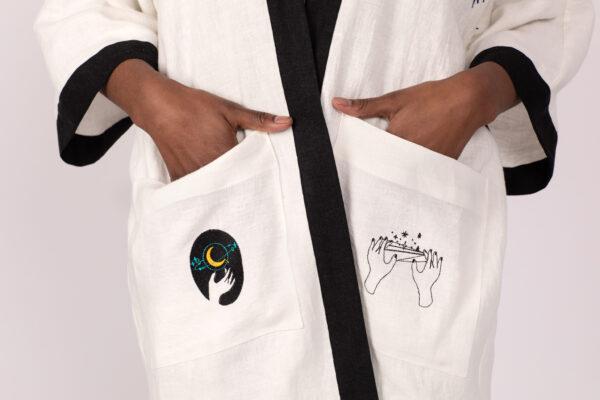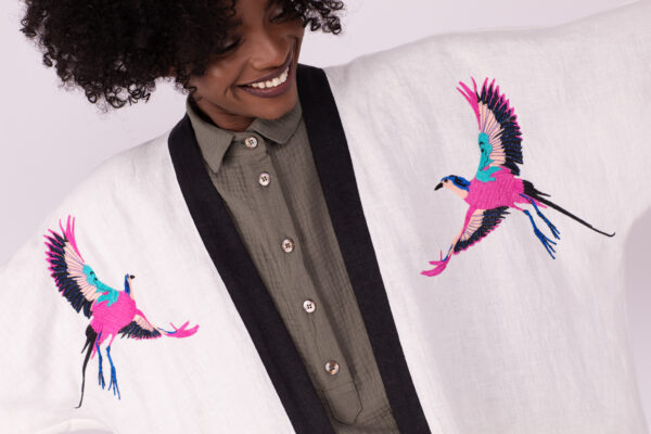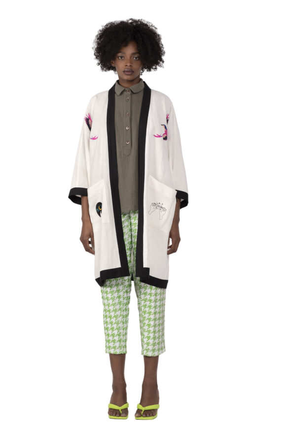 Linen is the perfect summer fabric, since it’s light and breathable .This embroidered linen kimono can be layered over trousers, jeans, shorts or a skirt.