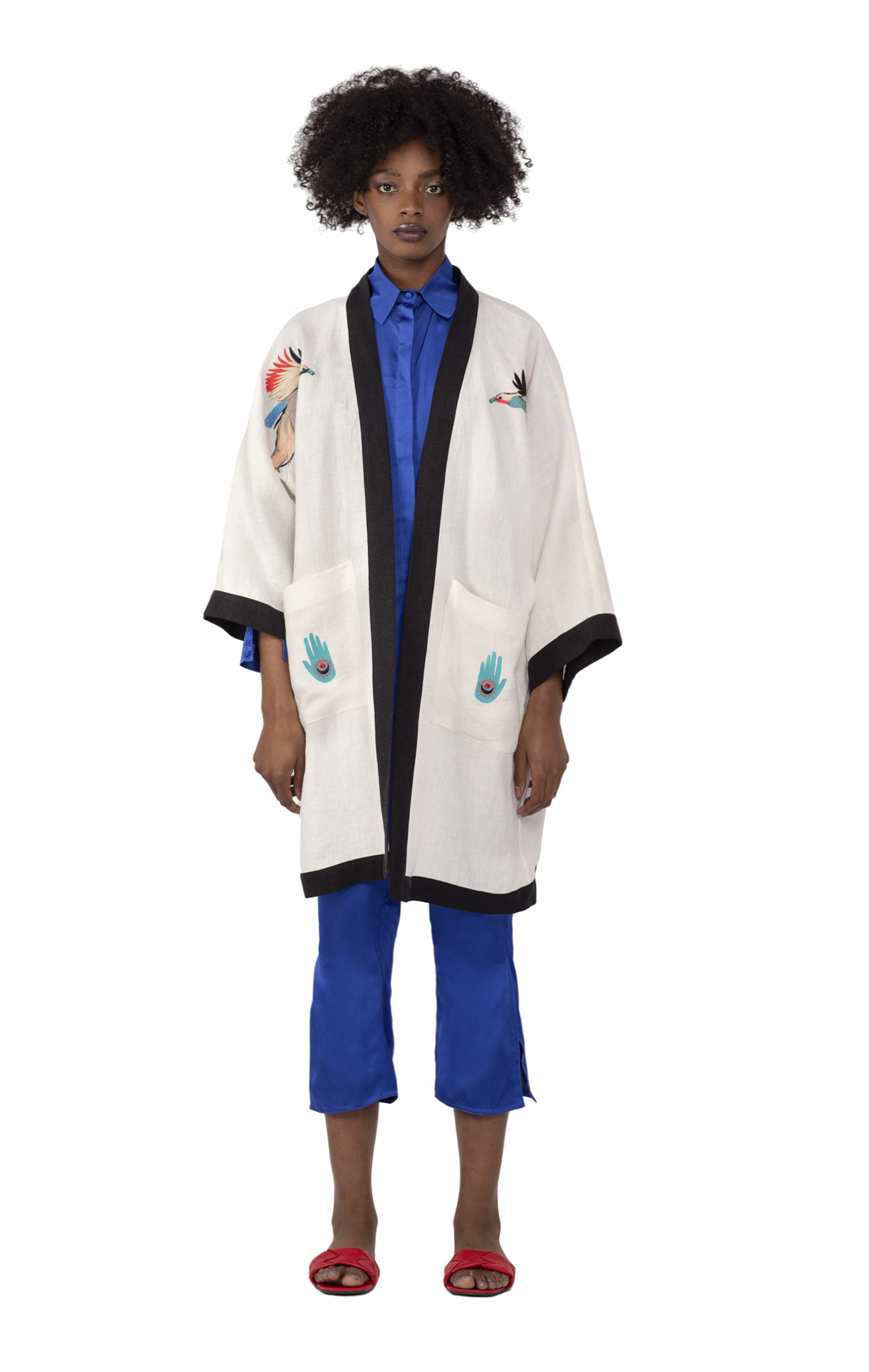 Linen is the perfect summer fabric, since it’s light and breathable .This embroidered linen kimono can be layered over trousers, jeans, shorts or a skirt.