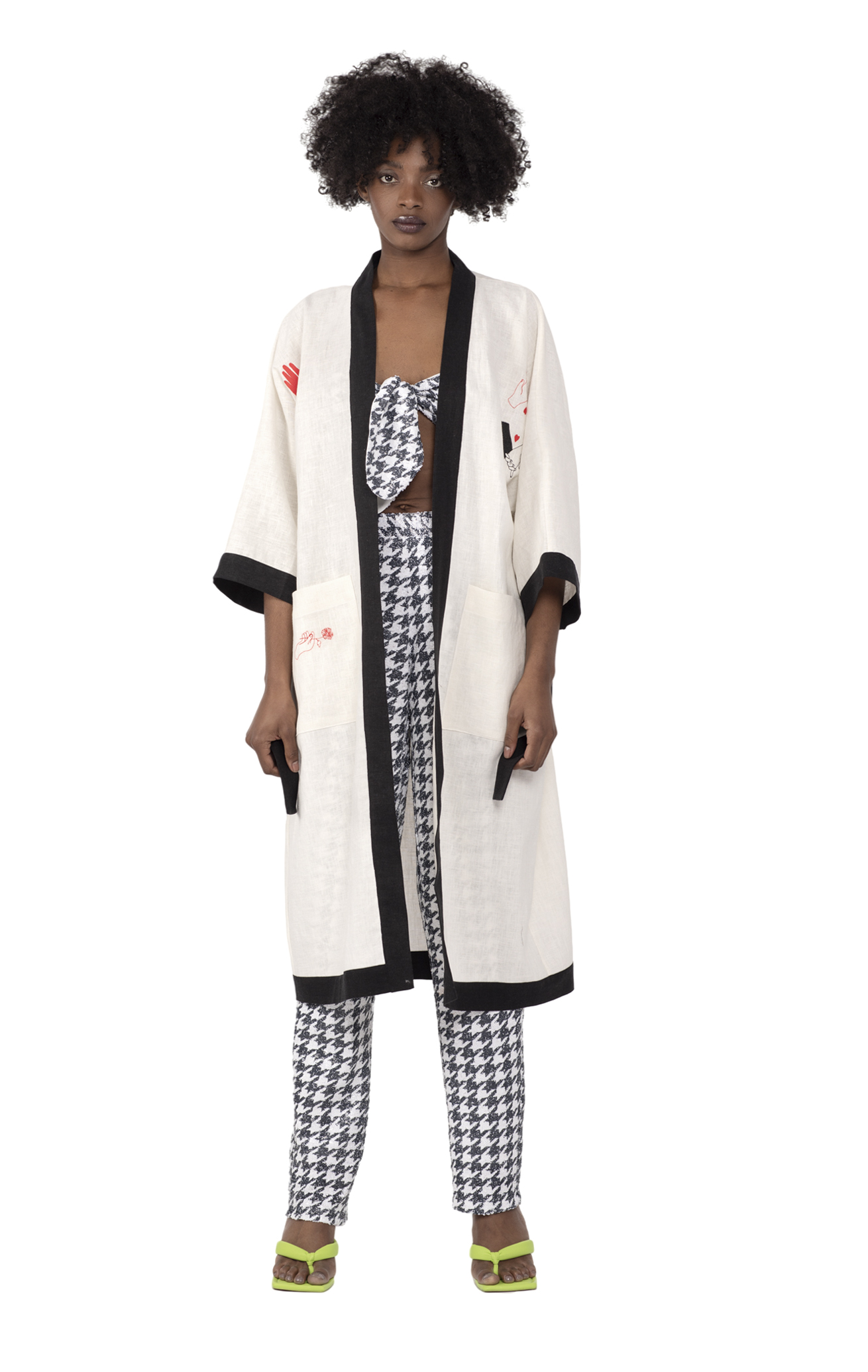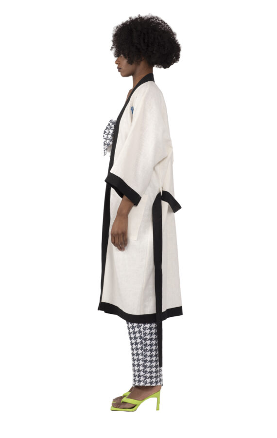 Linen is the perfect summer fabric, since it’s light and breathable .This embroidered linen kimono can be layered over trousers, jeans, shorts or a skirt.