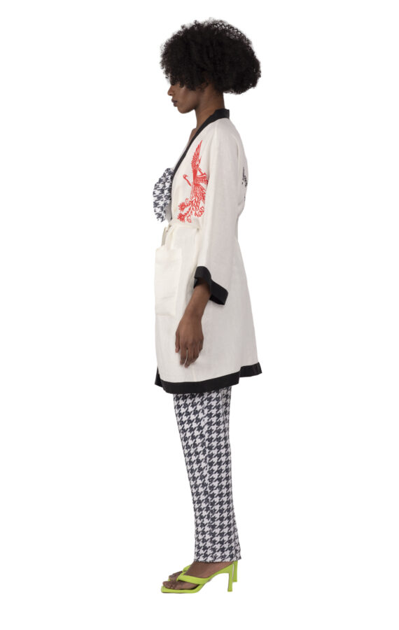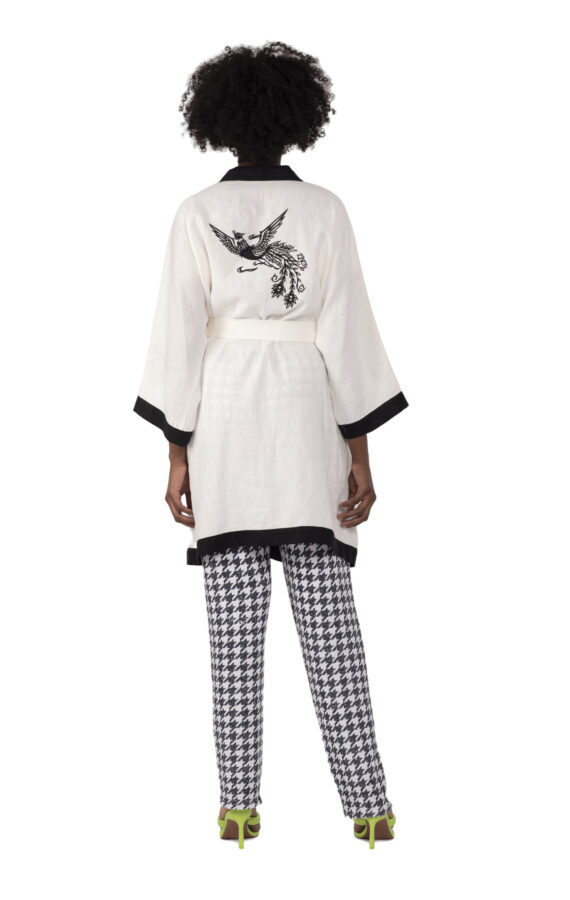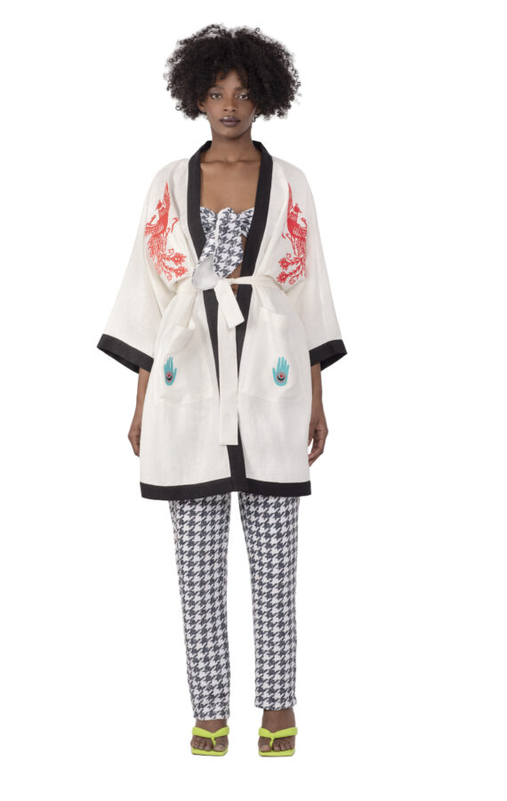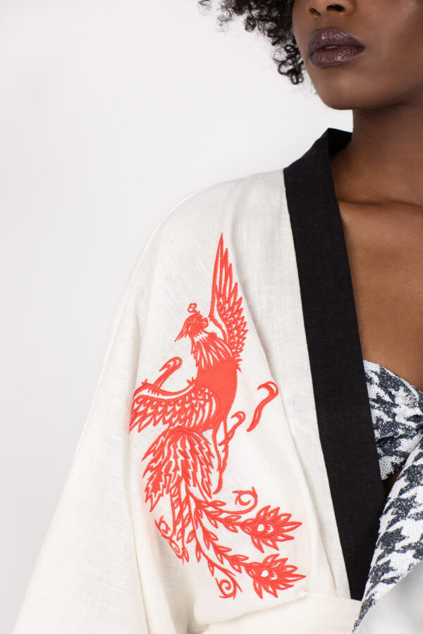Linen is the perfect summer fabric, since it’s light and breathable .This embroidered linen kimono can be layered over trousers, jeans, shorts or a skirt.