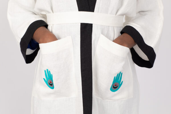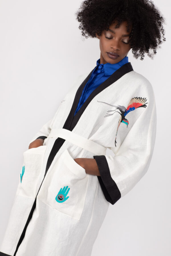 Linen is the perfect summer fabric, since it’s light and breathable .This embroidered linen kimono can be layered over trousers, jeans, shorts or a skirt.