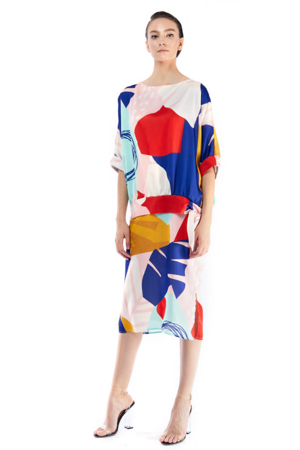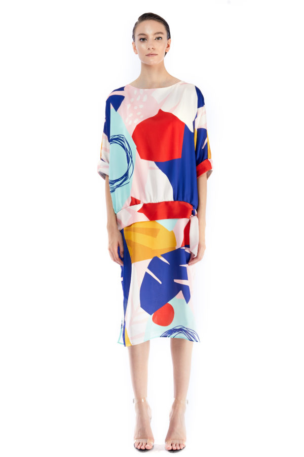 Abstract Floral Print Midi Dress