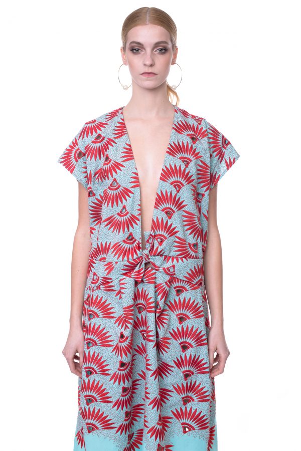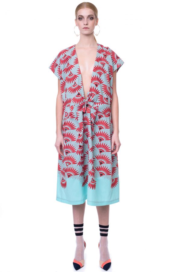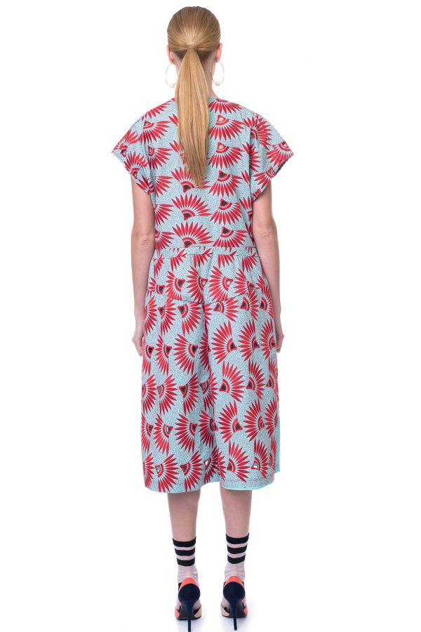Italian Aqua/Red Floral Cotton Embroidered & Eyelet Dress